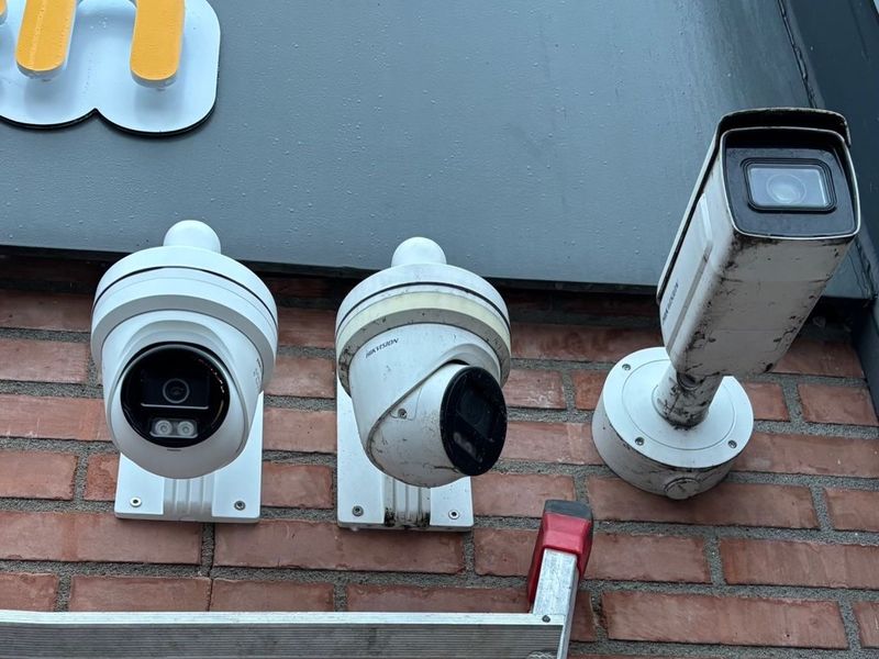 Op deze foto's zie je het verschil: vóór en ná het schoonmaken van de camera's. Heldere beelden maken nu eenmaal het verschil. En alsof dat nog niet genoeg was, is er links ook meteen een extra camera bijgeplaatst voor nog meer veiligheid.